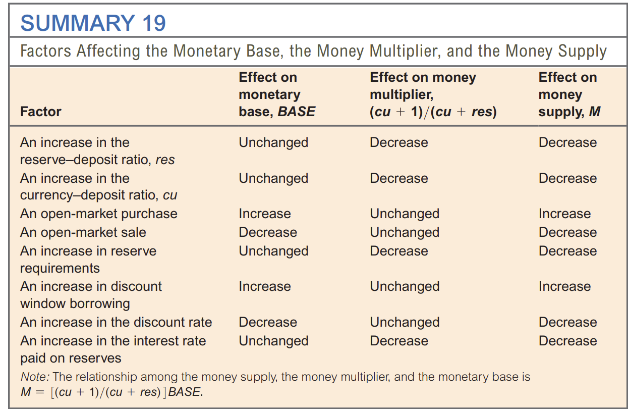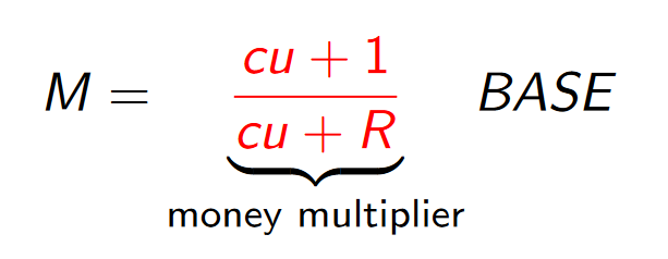 monetary base: total amount of money created by the central bank