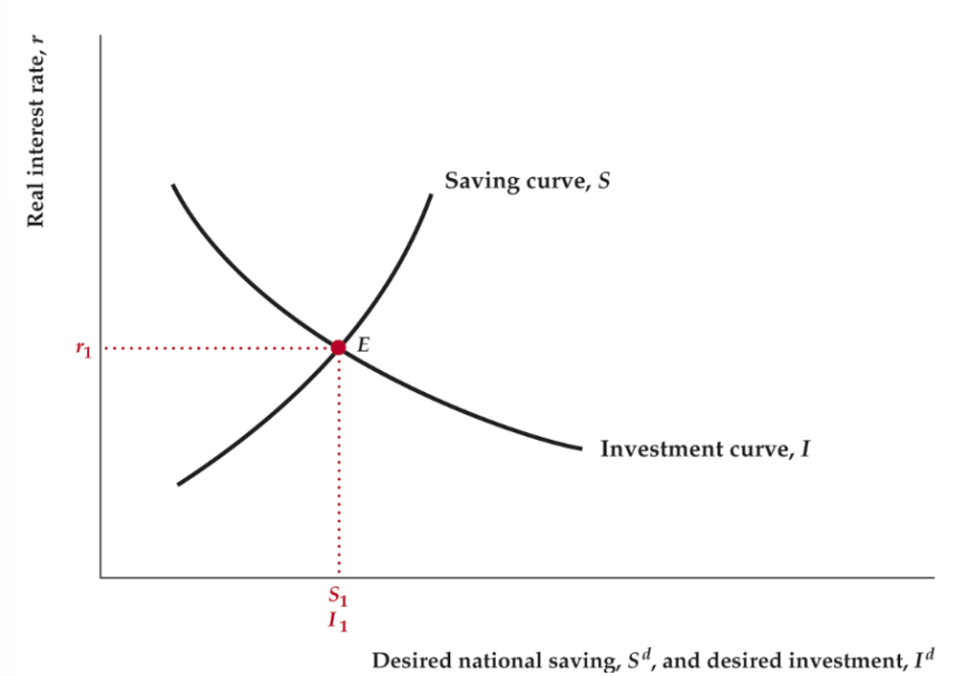 Investment curve is downwards sloping ( and relationship) Savings curve is upwards sloping (same reason)