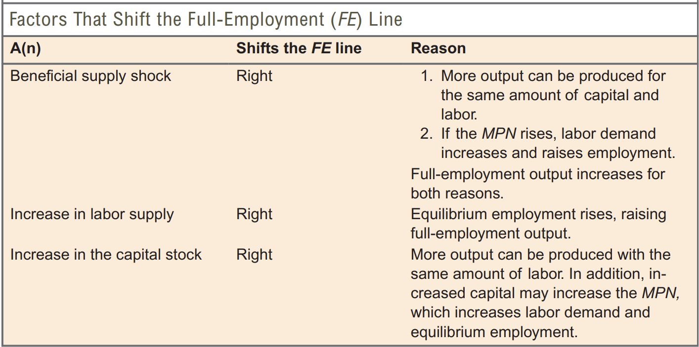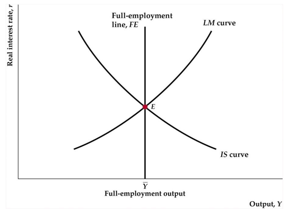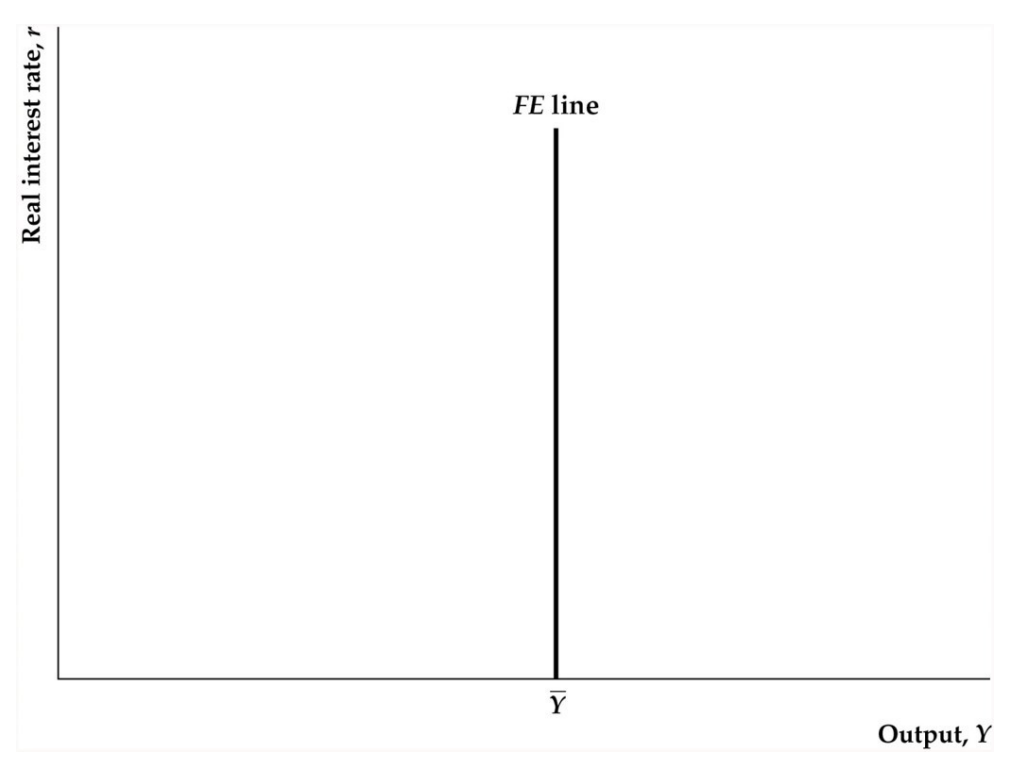 FE line only in long run because: determined by wages and prices (real wage), and in SR prices are fixed