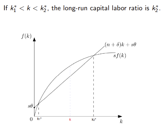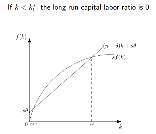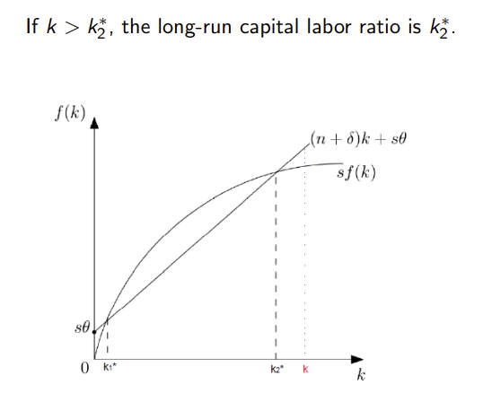 - k and y fall, high growth as decline in population: : k will decrease down to k* period of contraction